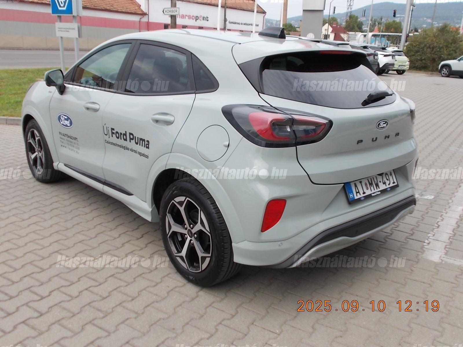 Ford márkakereskedés Ford Puma ST-Line 1.0 125Le mHEV demo autója eladó. Cactus Grey fényezés, Téli csomag- Fűthető szélvédő- Fűthető kormánykerék- Fűthető első ülések Vezetési kényelem csomag- Elektromosan állítható, behajtható, fűthető külső visszapillantó tükrök- beépített irányjelzővel, egyedi kilépő fénnyel- Ütközésmegelőző rendszer (radar és kamera alapú)- Intelligens Adaptív sebességtartó automatika (Stop&Go funkcióval automata váltó esetén)- Sávközéptartó automatika (automata váltó esetén)- Holttérfigyelő rendszer- Első parkolóradar- 360 fokos kamerarendszer Komfort csomag- Kéznélküli csomagtérajtó nyitás- Elektromosan állítható, behajtható, fűthető külső visszapillantó tükrök - beépített irányjelzővel, egyedi kilépő fénnyel- Manuálisan 4 irányban állítható utasülés- Kulcsnélküli nyitás és indítás- Vezeték nélküli telefontöltő